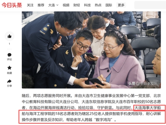 学院积极参与凌水街道观海社区党支部联合多方举办的“蔚蓝联盟 卫爱同行”学雷锋日主题志愿服务活动,以六方共建形式助力基层治理、服务居民群众。活动中,志愿者们化身“数字辅导员”,以耐心、细心、责任心逐一解答老人们在手机通话、微信聊天、网上缴费、健康码使用、反诈防骗等方面的疑问,手把手教学、一对一指导,用通俗易懂的语言拆解操作步骤,帮助老年人轻松掌握智能手机基础功能,有效破解“不会用、不敢用、用不好”的难题。志愿者们专业高效、温暖周到的服务,充分展现了学院“荣誉、创新、责任、担当”的学生精神特质,以实际行动助力老年群体共享数字生活便利,相关活动得到《半岛晨报》《今日头条》报道。