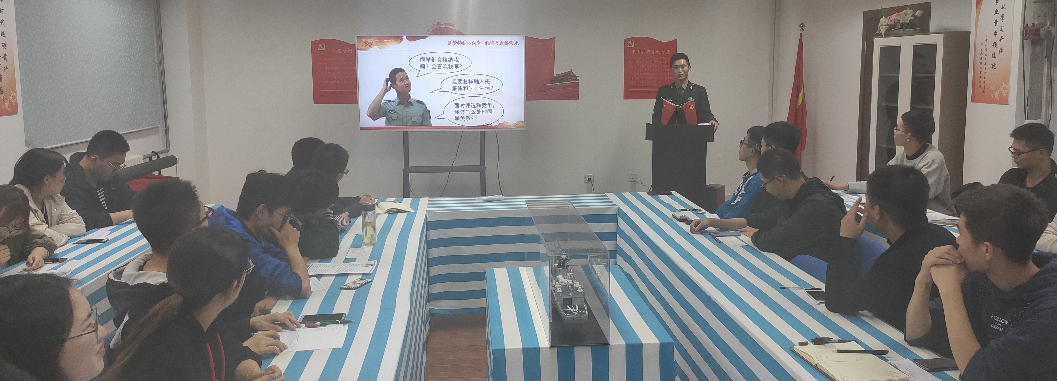 为深入贯彻落实《中共大连海事大学委员会发展学生党员工作实施细则》的文件精神,进一步做好学生党员发展工作,严格党员发展程序,提高党员发展质量,10月12日晚,船舶与海洋工程学院本科生第一党支部在英华三公寓党员活动室召开发展对象推荐人选答辩会。党支部全体成员、班级学生代表及23位发展对象推荐人参加了此次答辩会。会议由党支部书记崔学林主持。