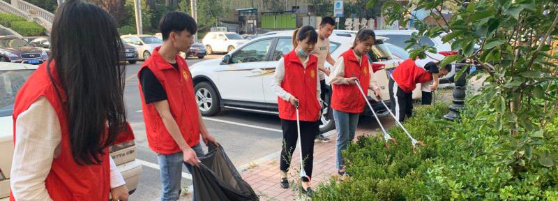活动中,学生志愿者根据前期任务分配积极地投入到白色垃圾的清扫回收工作中,重点对社区楼栋死角、楼前楼后堆积物、绿化带等地的白色垃圾进行集中清捡。此外,学生志愿者还印制了垃圾分类知识海报及展板,在活动现场为社区居民进行讲解,鼓励社区居民进行垃圾分类,为维护社会环境贡献力量。