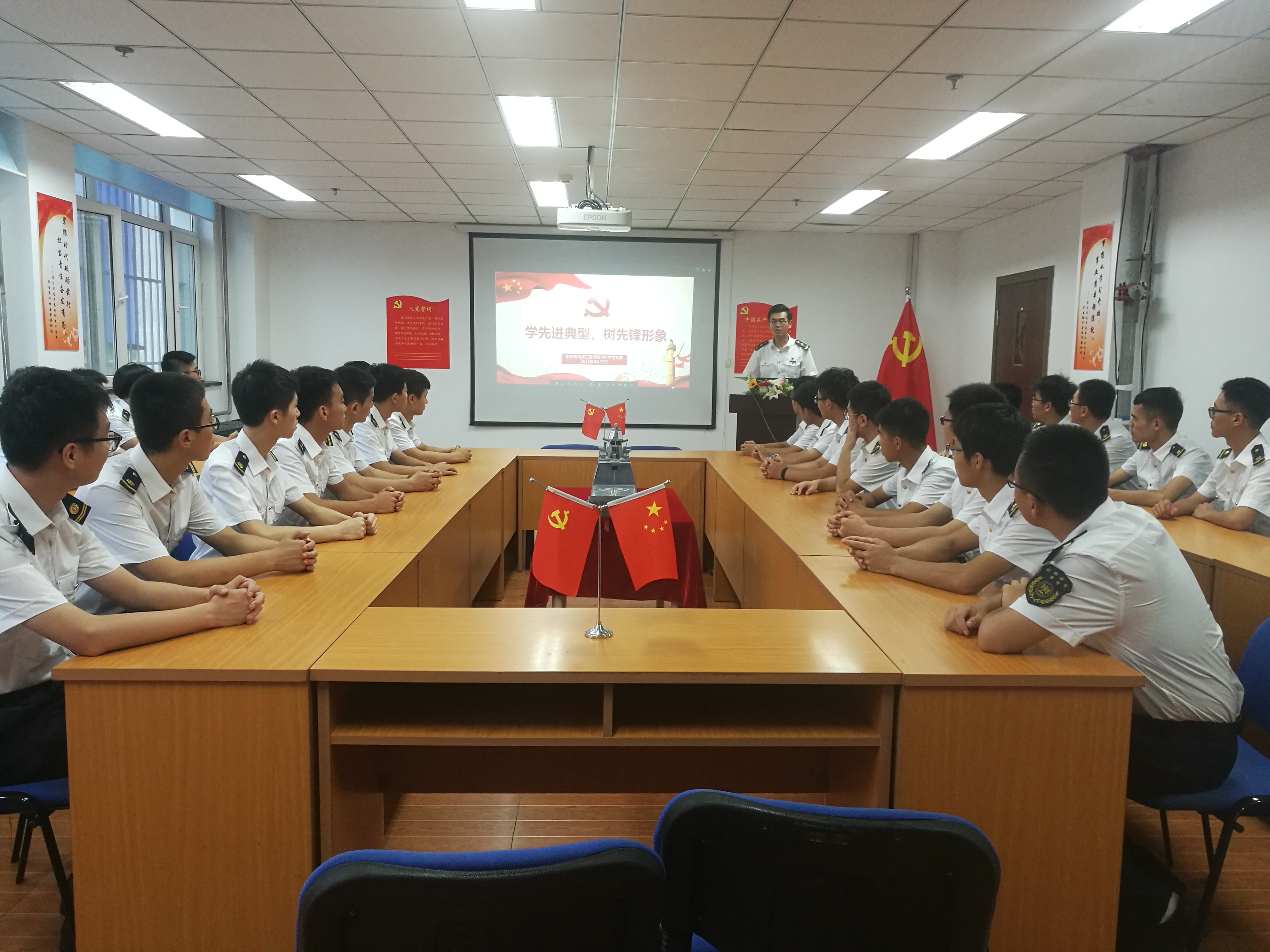 为进一步坚定学生党员的理想信念,提高学生党员的先锋模范带头作用。8月27日,船舶与海洋学院本科生党支部在英华三公寓党员活动室开展了“学先进典型,树先锋形象”主题党日活动。船舶与海洋工程学院本科生党支部全体党员参加了此次活动,会议由党支部书记李哲伦主持。