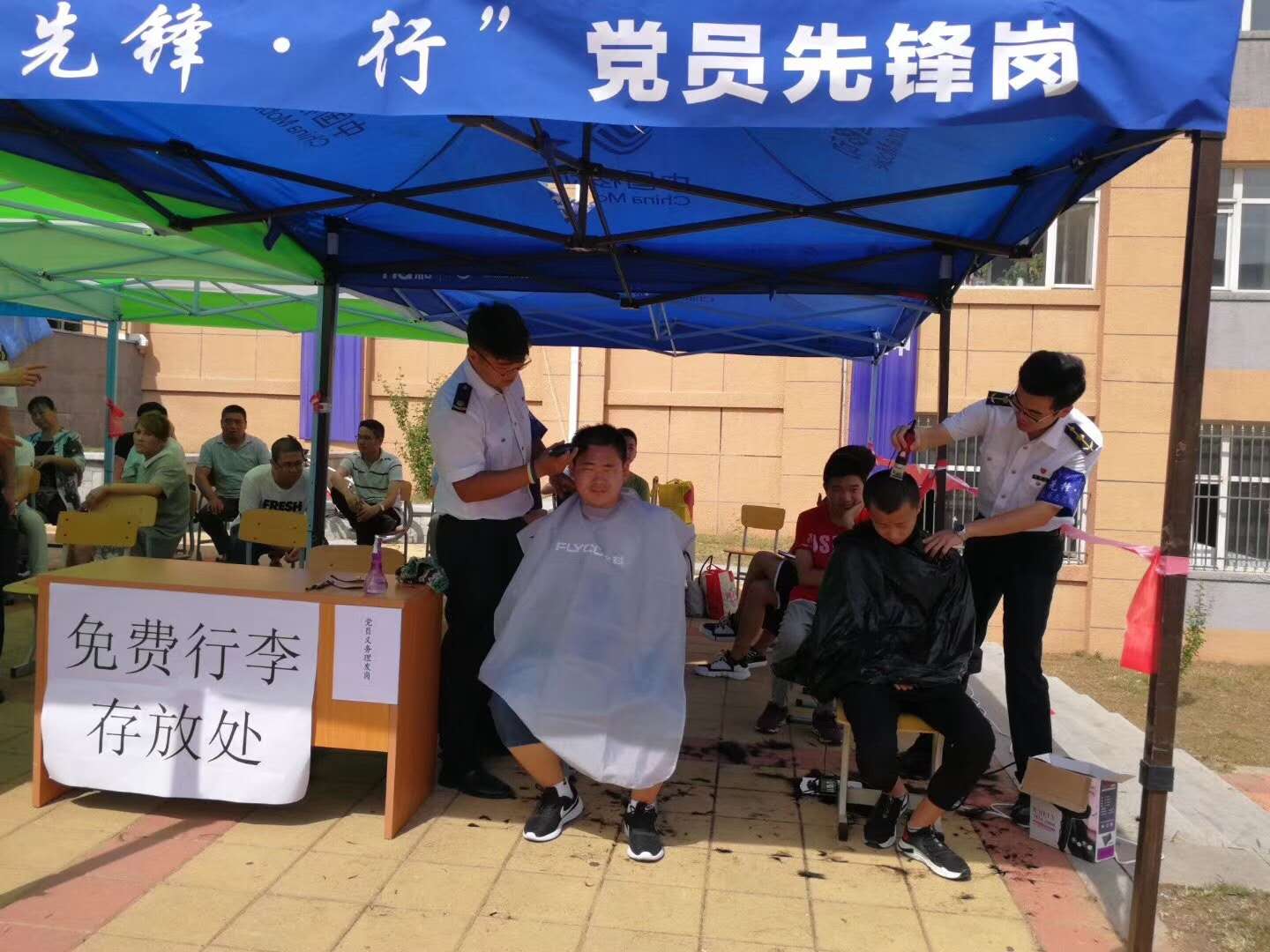 本次迎新工作中,党员先锋岗全体学生党员充分发挥党员的先锋模范带头作用,义务帮助新生搬运行李、带领新生领取备品、并为家长和新生们解答疑问。此外还设立了家长休息区、行李寄存区、义务理发点等岗位,为新生及家长提供便捷服务,获得一致好评。