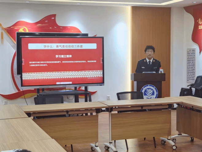 团课上,石钰以湘江战役的历史发展为主线,通过“历史抉择・绝境出征”“浴血鏖战・铁血荣光”“绝境新生・精神永存”“青春践行・使命在肩”四个篇章,系统梳理战役背景、关键节点与精神内核。1934年,红军第五次反“围剿”失利后被迫踏上长征之路,湘江两岸成为敌军精心布设的第四道封锁线——30万兵力层层围堵、火力密布,红军面临生死存亡的严峻考验。11月27日至12月3日,为期七日的湘江鏖战正式打响:先头部队冒死抢占渡口、浴血坚守,主力部队突破重围、奋勇前行,尤以红34师6000名将士的后卫阻击战堪称悲壮——他们为掩护主力突围,在腹背受敌的绝境中浴血奋战,师长陈树湘重伤被俘后,毅然断肠明志,以生命践行对党的绝对忠诚;军民同心协力、冒死筑桥,用血肉之躯铺就红军的突围之路,谱写了“向死而生”的英雄壮歌。