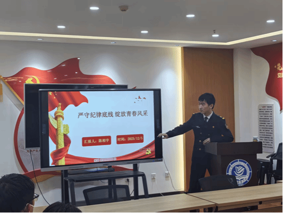 团课中,陈相宇以“纪律是青春的‘护城河’”为喻点明严守团纪的核心意义,他援引《中国共产主义青年团章程》总纲,强调共青团作为民主集中制组织,组织性纪律性是全团行动一致、决议落地的关键,“纪律不是成长的枷锁,而是行稳致远的屏障”的通俗解读,让团员们深刻认识到严守纪律既是团组织战斗力的保障,更是个人成才的必经之路;随后,团课聚焦“纪律处分种类”与“红线行为”,列出公开发表不当政治言论、参与非法组织等团内纪律“高压线”,并通过一系列典型案例,让团员们感受纪律严肃性;在“处分程序与团员权利”环节,主讲人介绍了团内处分流程,明确团员的申辩、申诉权及留团察看期满恢复权利等改正途径,让团员们既知晓纪律约束,也了解权利救济,体会到团组织“严管与厚爱并重”的原则。
