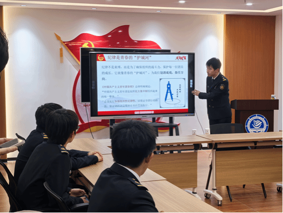 为强化团员青年纪律意识,筑牢思想防线,引导团员在青春赛道坚守底线、行稳致远,12月5日,船舶与海洋工程学院在党员活动室举办“严守纪律底线绽放青春风采”专题团课。学院部分团干部、入团积极分子齐聚一堂,共同学习团的纪律要求,明晰行为边界。本次团课由陈相宇同学主讲,以“为何守纪律、纪律有哪些、处分怎么来、如何守规矩”为主线,呈现了一堂内涵深刻的纪律教育课。