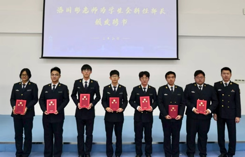 随后,王宏诗、李腾、潘国彬三位老师为新一届团委副书记、学生会主席团成员及各部门部长颁发聘书。沉甸甸的聘书不仅是荣誉的象征,更是责任的传递,见证着学生组织薪火相传的使命担当,也让新一届骨干成员感受到了学院的信任与期许。