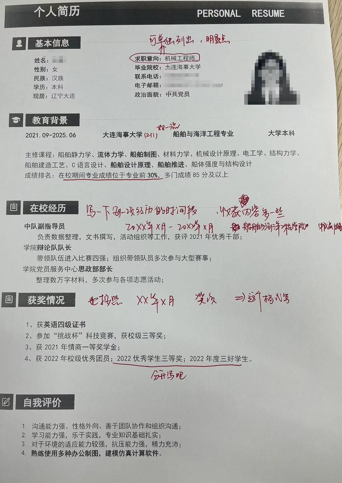 为了增强同学们的就业意识,迈好成功求职的第一步,帮助学院2025届毕业生提高简历制作水平,船舶与海洋工程学院于9月9日至15日开展毕业生简历制作指导活动。本次活动分为简历制作启蒙教育、简历制作与指导、优秀简历评选与展示三个部分。