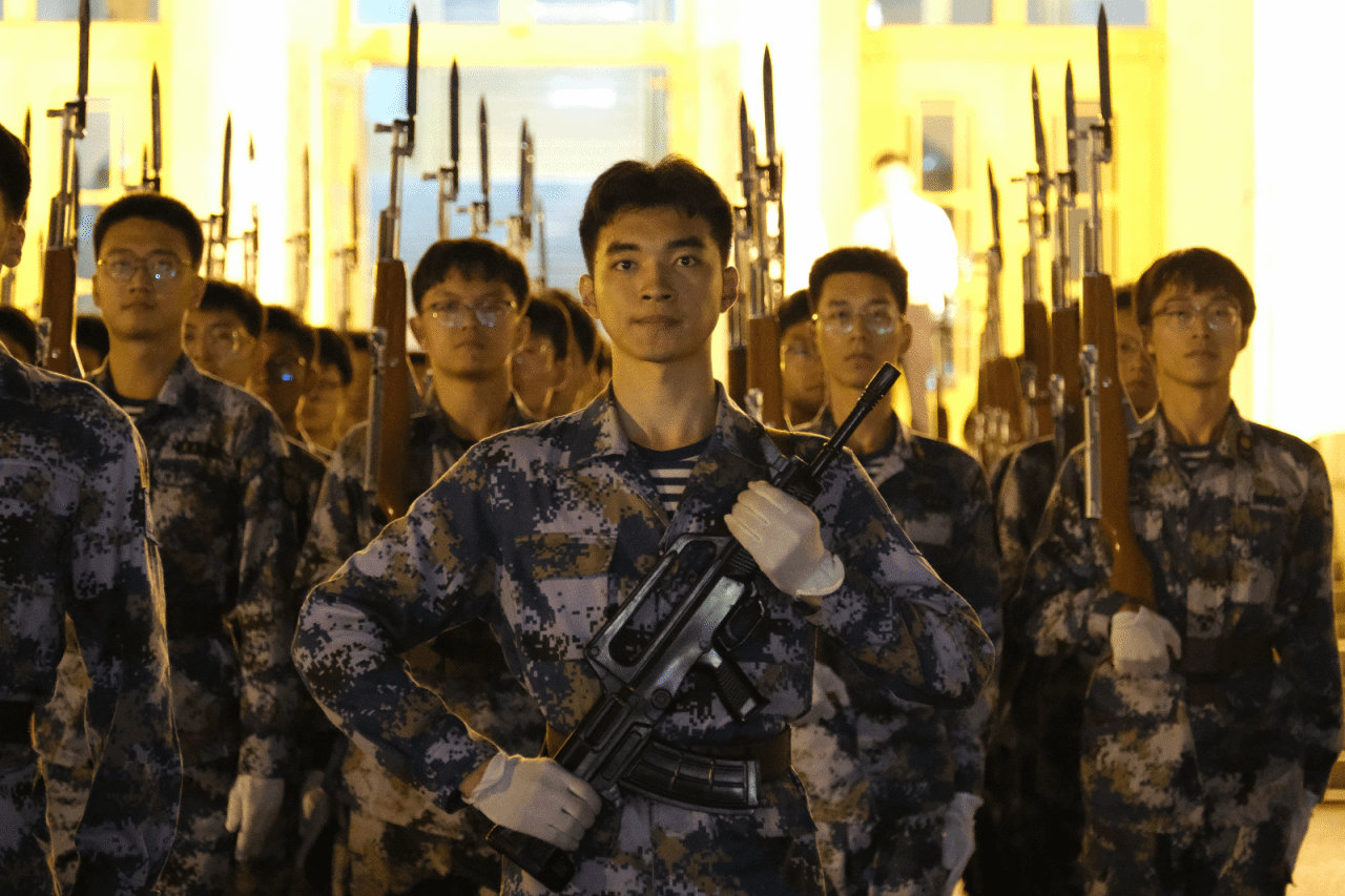 国护每周有三次早训,两次队列训练,一次升旗彩排。早训时,他在5:40就准时起床,前往东体训练。训练很苦很累,但出于对国旗一腔赤诚的热爱与不能半途而废的担当,在好朋友田旻丰的互相鼓励下,李唯一“见第一就抢,见红旗就扛”,护我国旗,扬我国威!