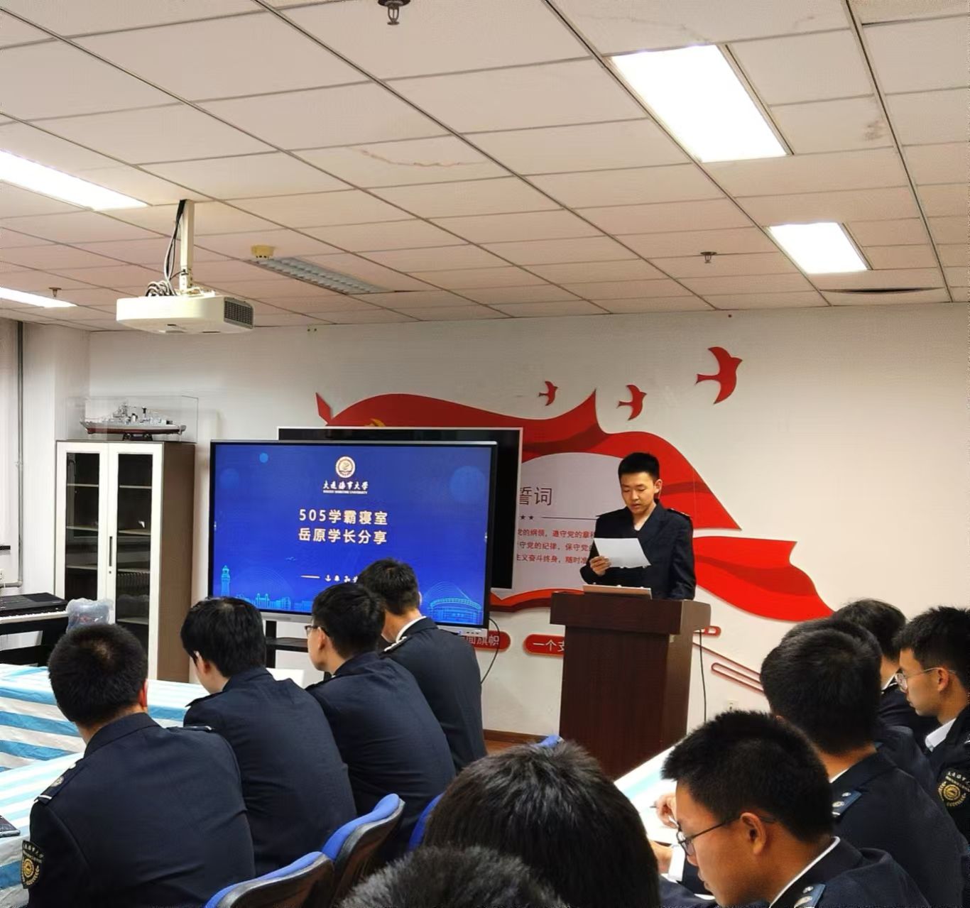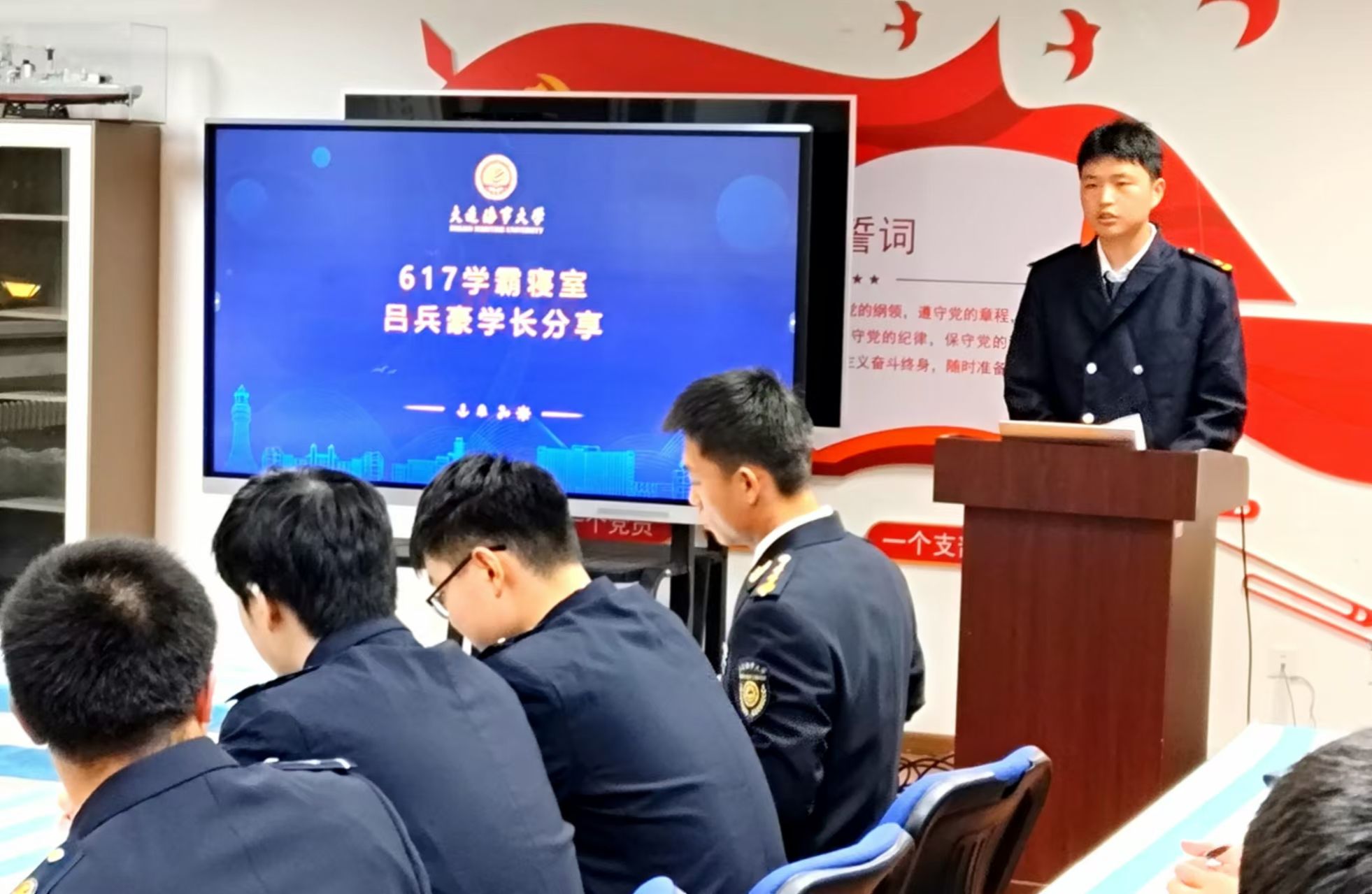 为引导同学们树立良好学风,鼓励同学们切实践行“为真理,格物致知;为至善,修己达人;为家国,立心立命;为海事,善作善成”的海大人学习观,帮助他们在思政、综合素养、学习成绩、科创比赛等各方面更好地向优秀学长看齐,不断提高个人综合素质,成长为优秀的海大人,10月30日,船舶与海洋工程学院2024中队举行了“学霸寝室”座谈会。2022中队指导员薛航,获评2023-2024学年“学霸寝室”的优秀学长刘天坤、岳原、孙久淇、吕兵豪、夏暄皓、李志恒和徐祯出席本次座谈会。会议由2024中队指导员李腾主持。