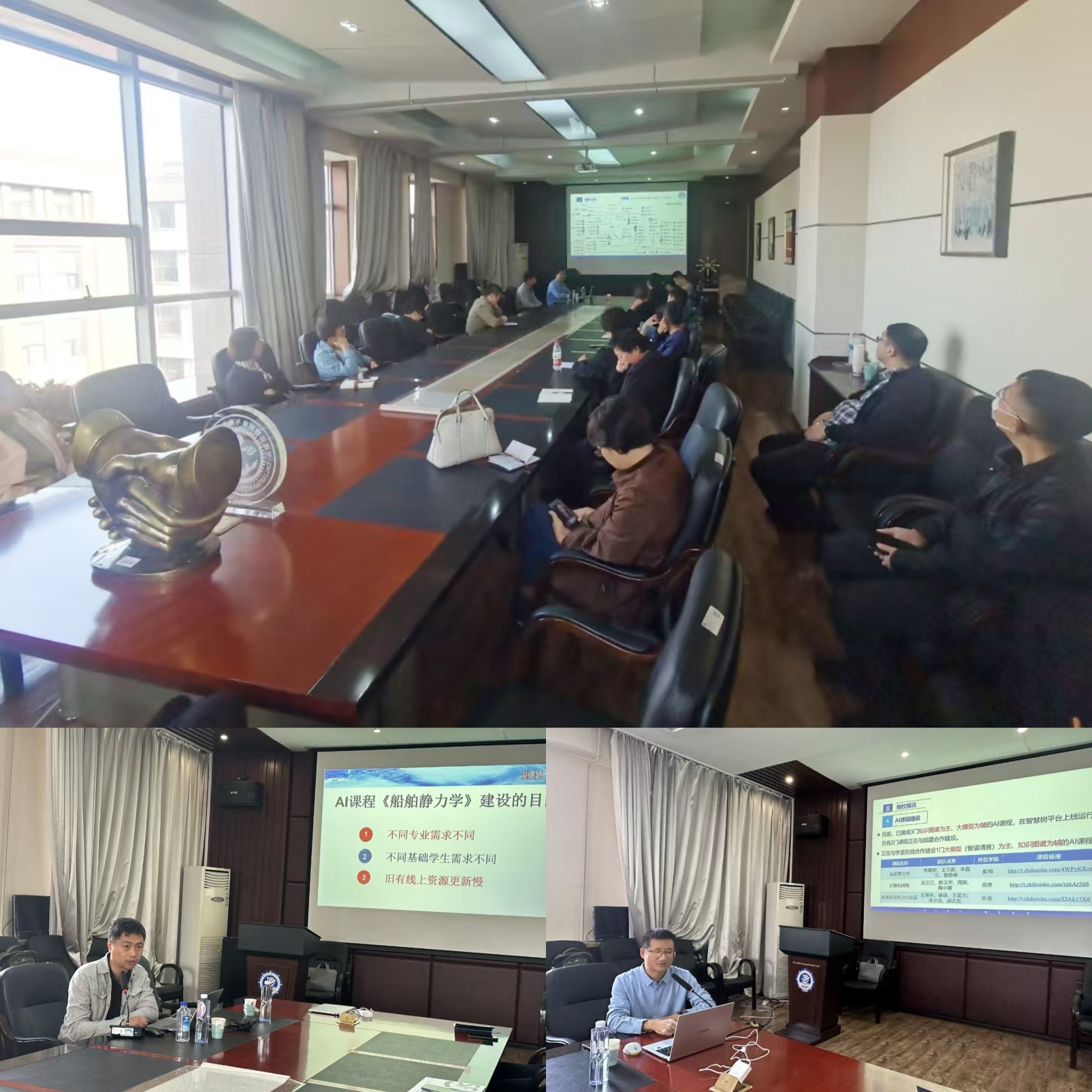 作为学校新上线的三门AI课程之一《船舶静力学》的负责人,张戴晖老师介绍了AI课程建设的过程与投入,并通过在线演示课程网站,对AI课程如何与传统课堂有机融合提出了建设性建议。