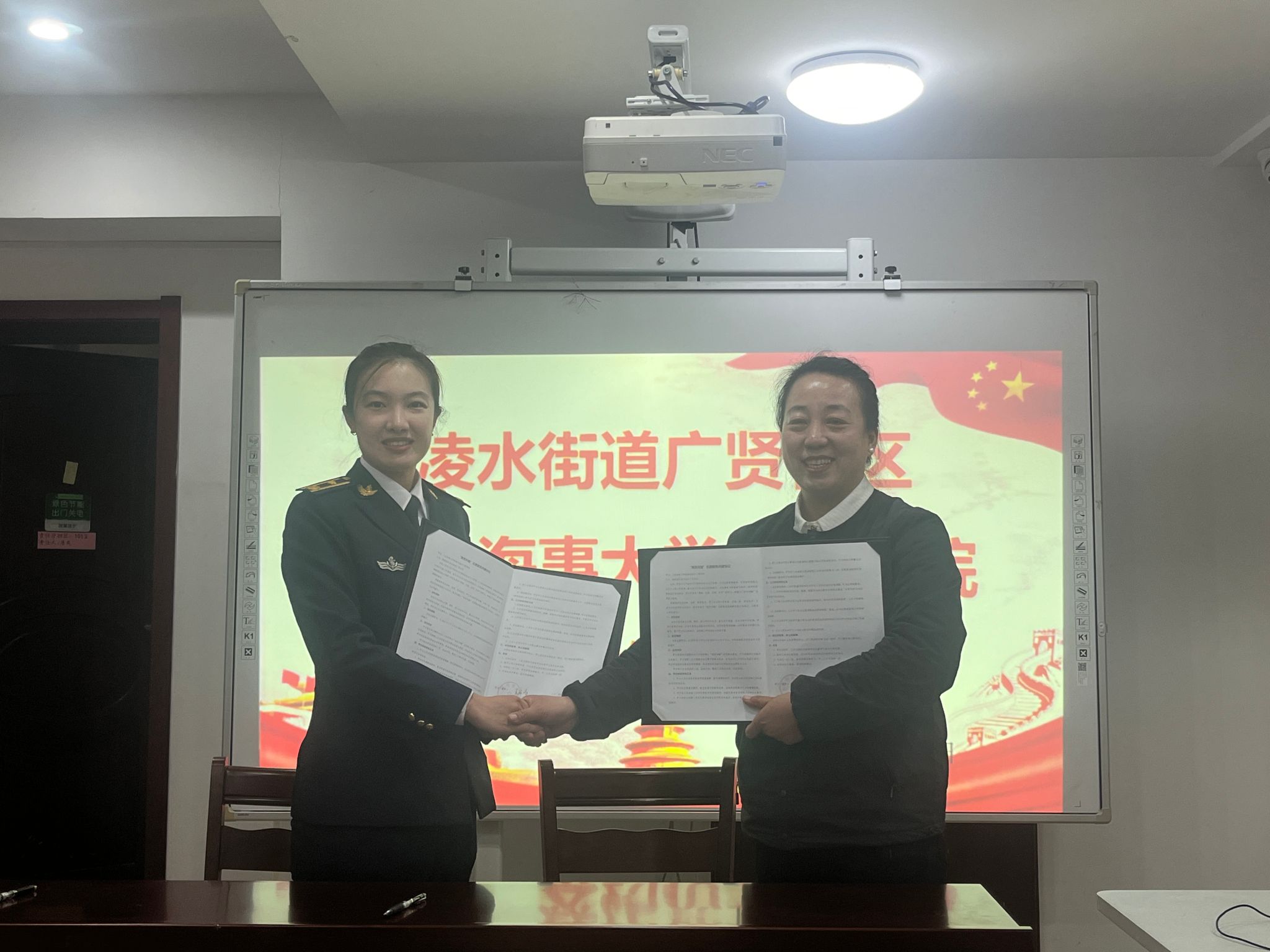 首先凌水街道广贤社区党总支副书记林晓丽对大连海事大学船舶与海洋工程学院一行表示热烈欢迎,随后王宏诗与赵二曼共同签署“海贤共融”志愿服务共建协议,双方合影留念。根据协议,未来船舶与海洋工程学院将持续组织学生参与广贤社区的各类志愿服务活动,在文化教育、环境整治、关爱特殊群体等多个领域深度合作,充分发挥高校人才资源优势,为社区发展注入源源不断的动力;社区也将为学生们提供广阔的实践平台,助力学生成长成才,实现校社共赢,共同书写新时代文明实践的精彩篇章。