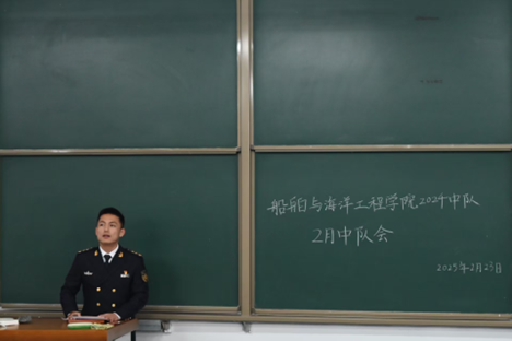 为推动青年学子快速完成假期状态向学业节奏的切换,锚定新学期专业成长与集体建设的双维目标,2月23日,船舶与海洋工程学院2024中队于学汇楼102教室召开寒假后的首次中队会。本次会议由中队指导员李腾主持,中队全体学生成员全员与会,以思想凝聚与行动部署的双重效能,拉开新学期发展序幕。